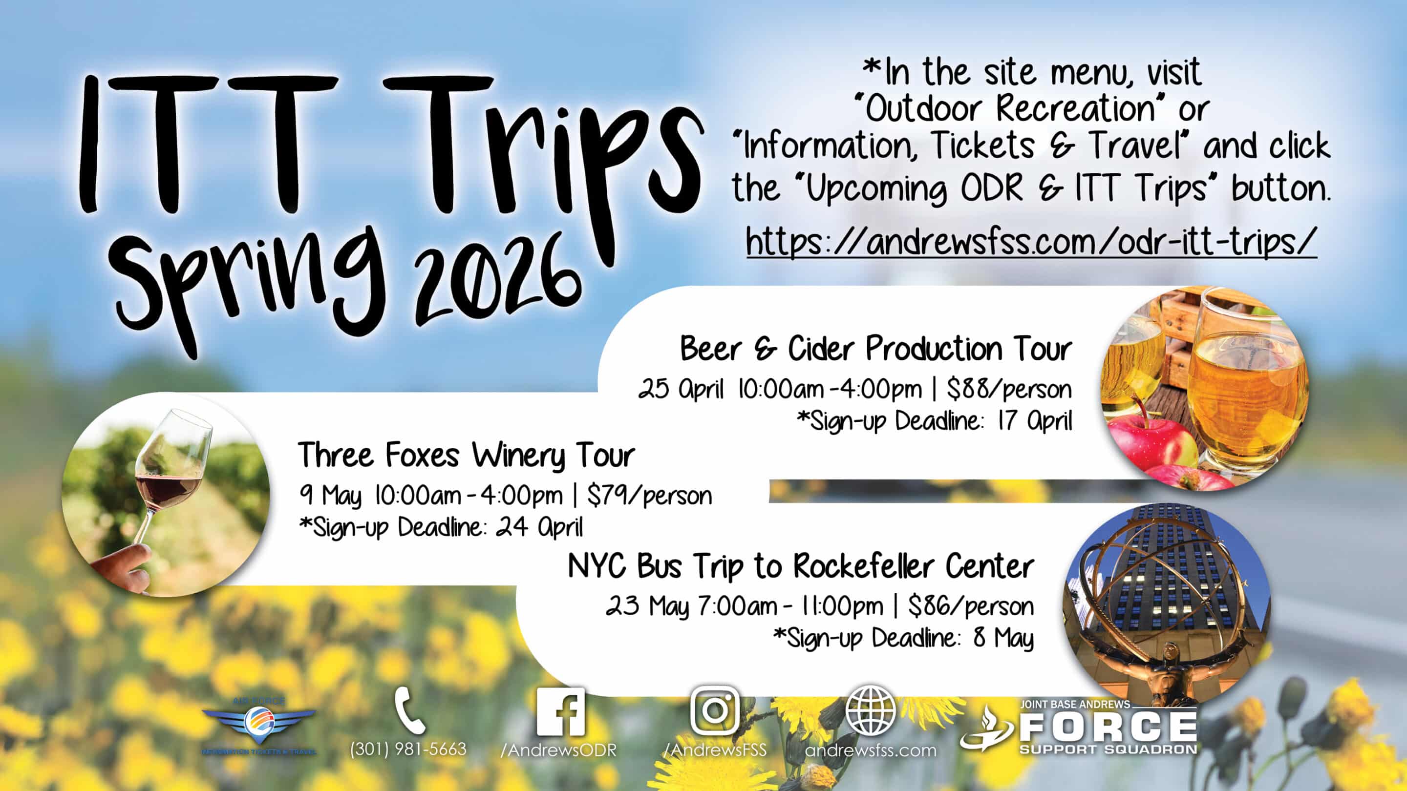 Welcome to Joint Base Andrews Directory ID Card Calendar ITT ODR 316 FSS Events 6 events found. Events Today Now Now - 4/18/2026 April 18 Select date. List of events in Photo View Apr 11 High Ropes & Confidence Course Challenge 8:15 am - 4:30 pm Apr 14 Crafting Around 10:00 am - 11:00 am Apr 15 StoryTime 10:00 am - 11:00 am Apr 16 LEGO Club 11:00 am - 12:30 pm Apr 16 Karaoke Night 7:00 pm - 9:00 pm Apr 18 Game Club 11:00 am - 1:00 pm Previous Events Today Next Events Subscribe to calendar Google Calendar iCalendar Outlook 365 Outlook Live Export .ics file Export Outlook .ics file View More Events Subscribe to FSS Weekly!Stay in-the-know and subscribe to our weekly emailer! Subscribe Tell us what you think! Take our customer online ICE Feedback Survey Click Here